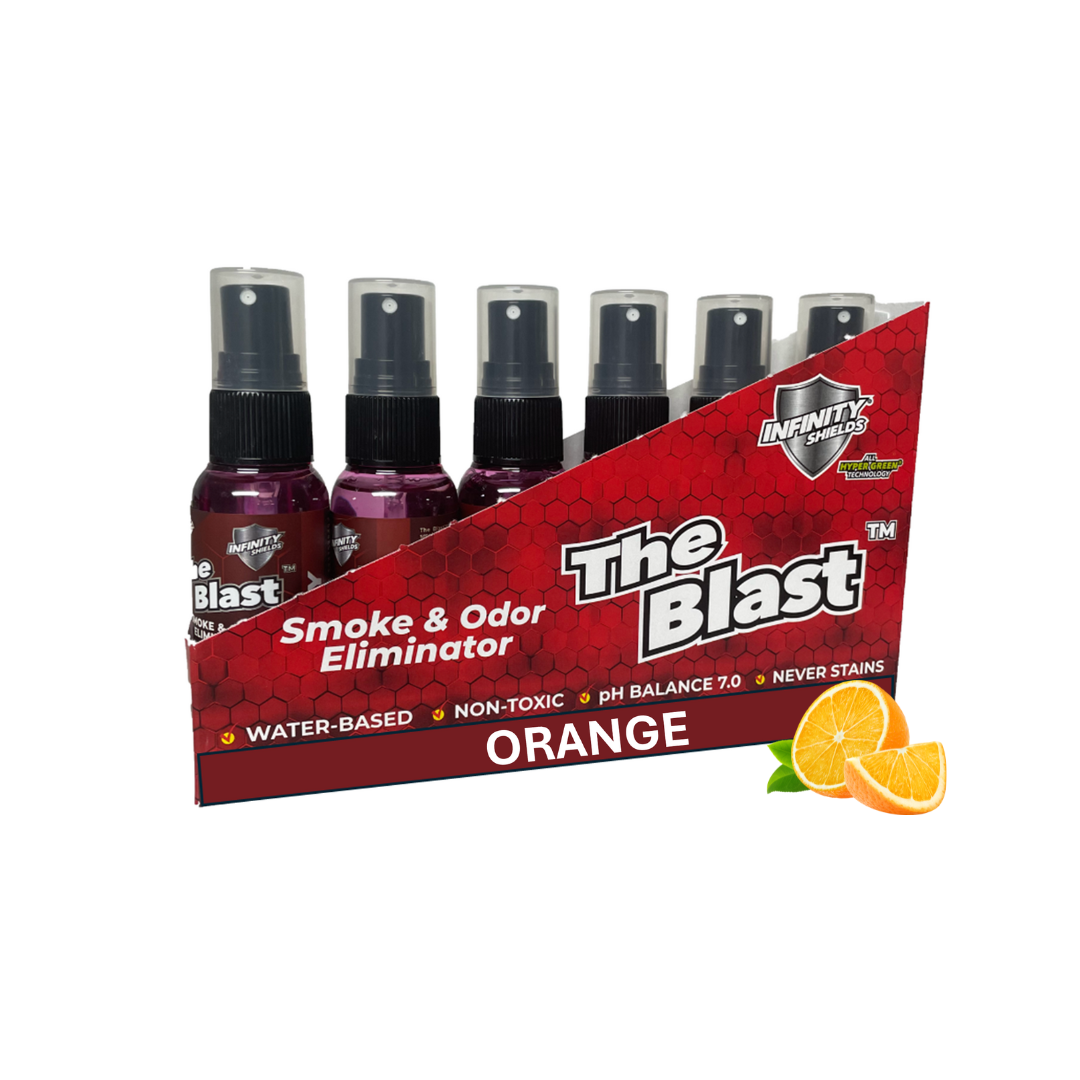 Le mini-pulvérisateur Blast™ d'Infinity Shields® de 48 ml est le désodorisant à base d'eau le plus avancé et primé au monde ! Ce produit ne masque pas la fumée et les odeurs, il les élimine au contact et continue d'agir après la pulvérisation sur vos vêtements ou objets. Le Blast™ crée une barrière protectrice invisible et durable sur la surface traitée ! Il élimine les odeurs de cigare, de cigarette et de cannabis, ainsi que les pires odeurs putrides. Chaque paquet contient 6 mini-pulvérisateurs de 48 ml. Parfums : Amande, Poudre pour bébé, Cannelle, Cerise, Eucalyptus, Fraîcheur et propreté, Chèvrefeuille, Lavande, Voiture neuve, Brise océanique, Orange, Menthe poivrée, Pétale de rose, Sauge. • Vanille • Citron • Fabola . Infinity Shields The Blast est dans une ligue à part avec sa formule brevetée à base d'eau. Une bouteille durera des mois !